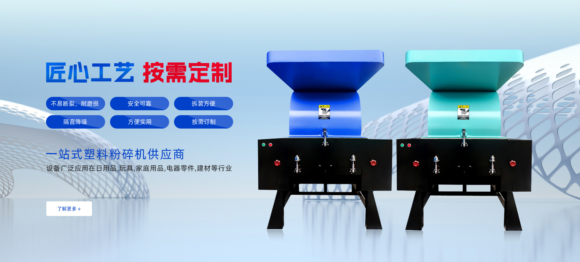 本公司系列產品以其卓越的性能、高性價比聞名于塑料輔助機械行業。主要產品有:粉碎機、 干燥機、吸料機、模溫機、拌料機、冷水機、冷卻塔等等!我公司還聯合了國內知名的塑機輔機經銷商,希望為廣大用戶提供子力品牌系列的優質產品和更及時更完善的售后服務!